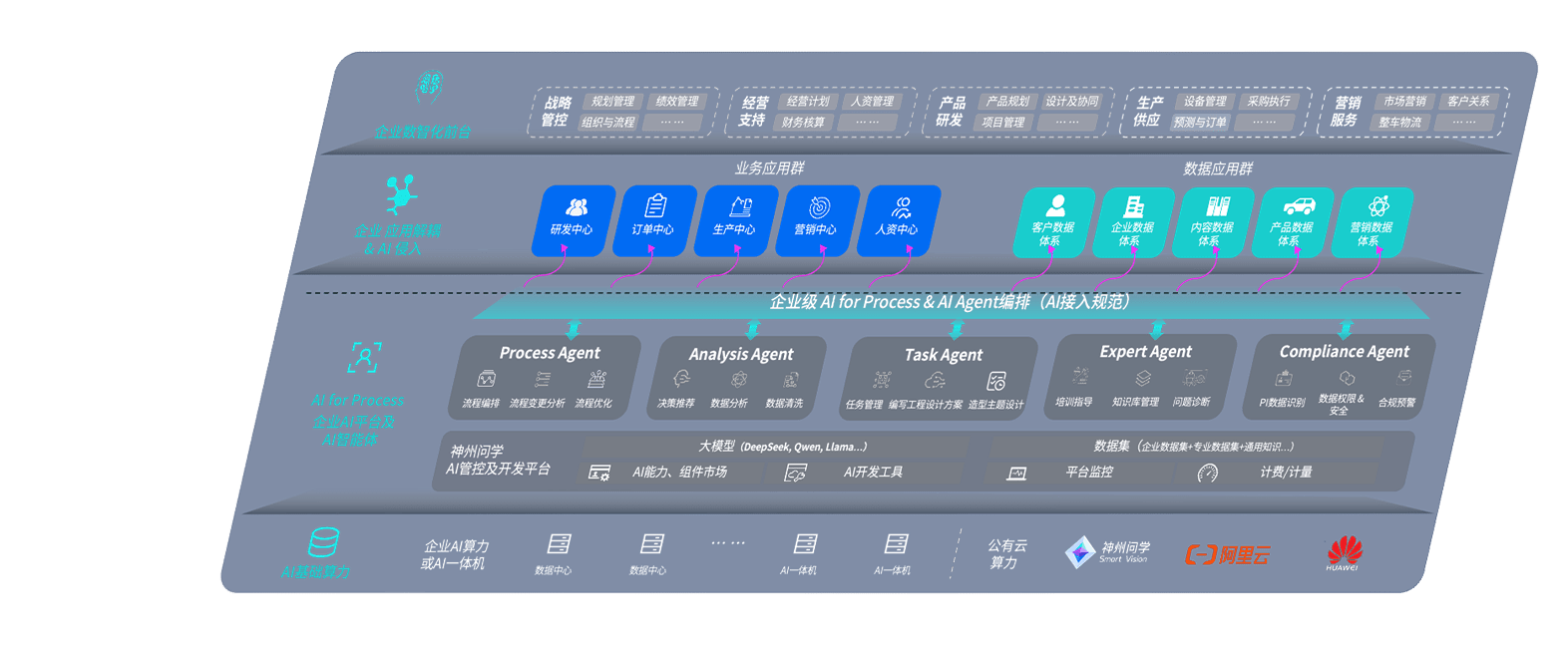 端到端的一站式AI工作空间深度融合了从企业战略规划到日常经营的全流程业务板块,,,定向解决车企内部领域多、、、部门多、、、、链条长、、、场景碎片化等难题,,,支持车企快速构建以AI为核心的生产力写作体系,,,实现任务执行与AI能力的无缝集成与交互